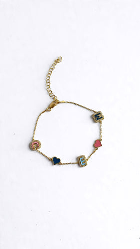 Custom Enamel Initial Heart Bracelet with Pave Outline