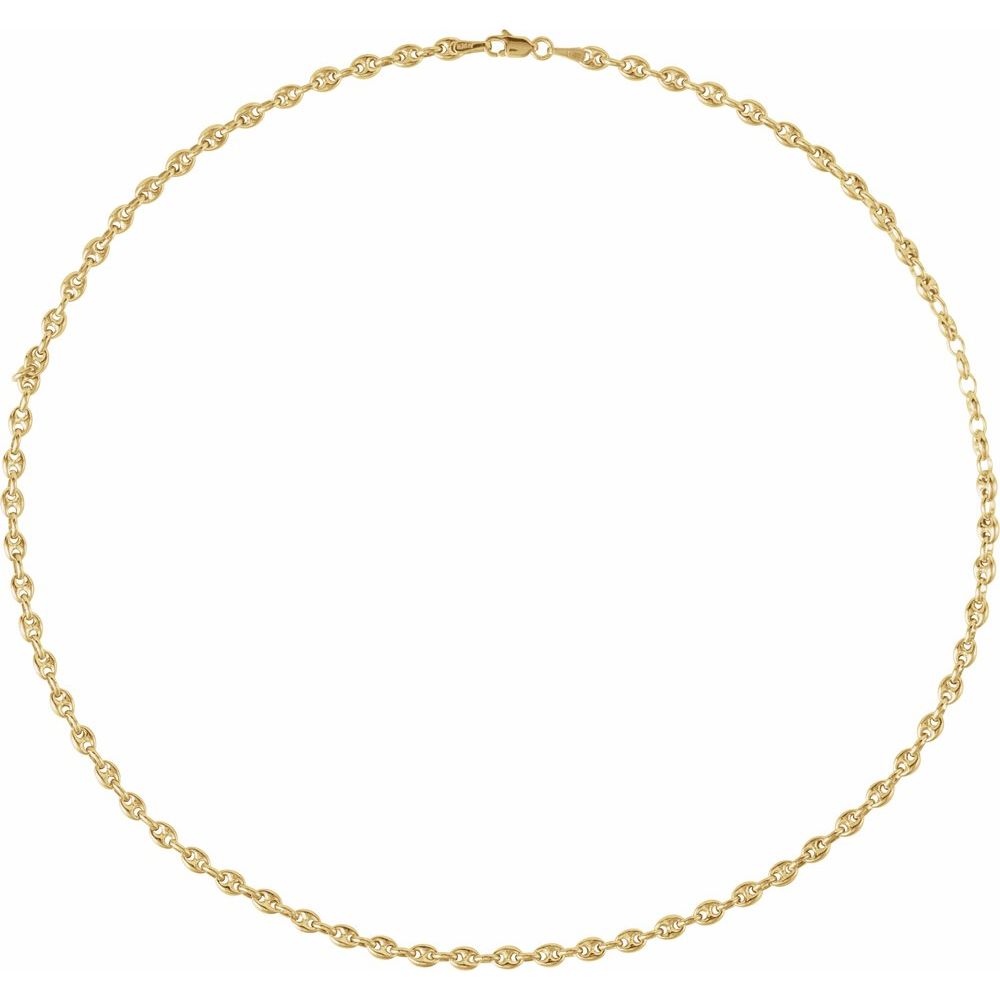 The Marina Anchor Chain features softly rounded puffed anchor links crafted in polished 14K yellow gold. Its hollow construction keeps the necklace lightweight while maintaining a bold, luminous presence.
