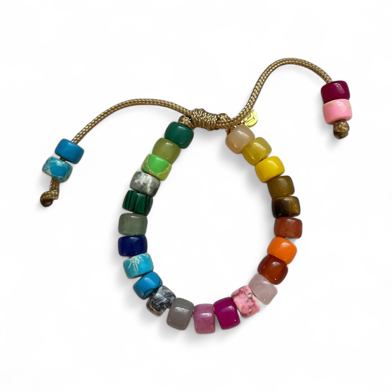 Adjustable bracelet featuring gemstone beads.