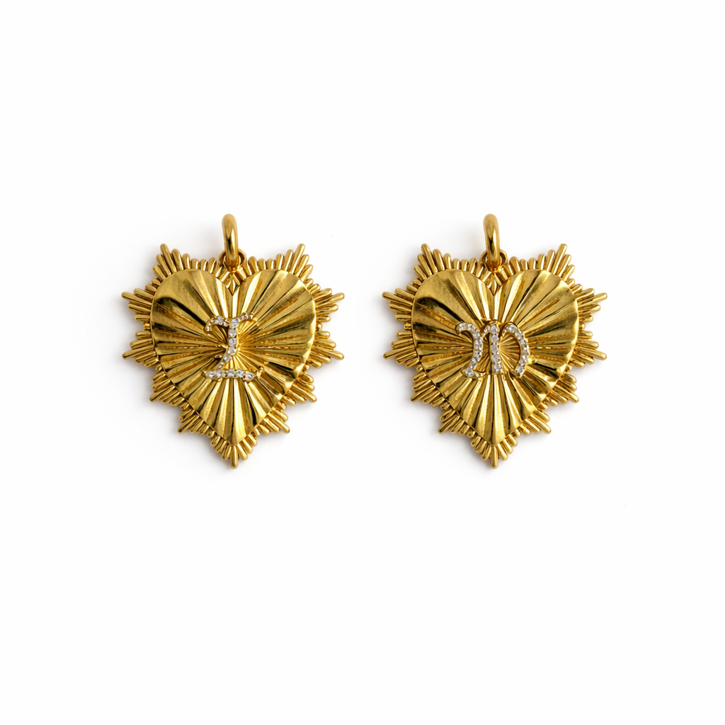 A bold expression of love and individuality, the Radiant Heart Pavé Initial Pendant features a sculpted sunburst heart silhouette crafted in 925 sterling silver and finished with your choice of rich gold plating or gold-filled.